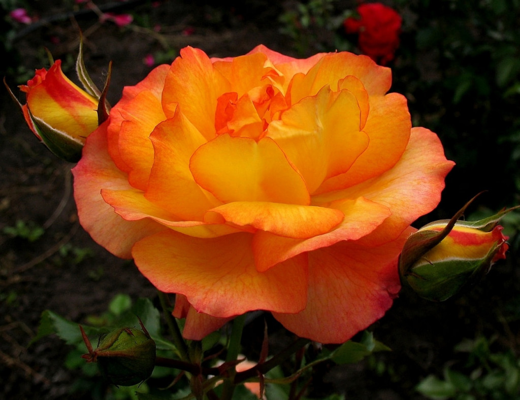 Погрузитесь в мир ярких красок с саженцем кустовой розы "Сахара". Этот сорт розы отличается необычайно красивыми цветками, которые переливаются оттенками золотисто-желтого и оранжевого, напоминая закат в пустыне. Кусты достигают высоты до 1 метра, что делает их идеальными для создания живых изгородей, клумб и цветочных композиций.